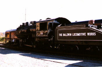 Baldwin #26 is a very busy locomotive. The small steam engine handles a variety of tasks. Originally built for switching and similar dutiies, the 0-6-0 is a durable, reliable little powerhouse.