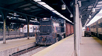 This old toy loco still bears DL&W markings, a token of the terminal's builder, the Lackawanna Railroad |