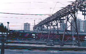 That bridge-like structure bears catenary wires for all of Hoboken's platforms! |