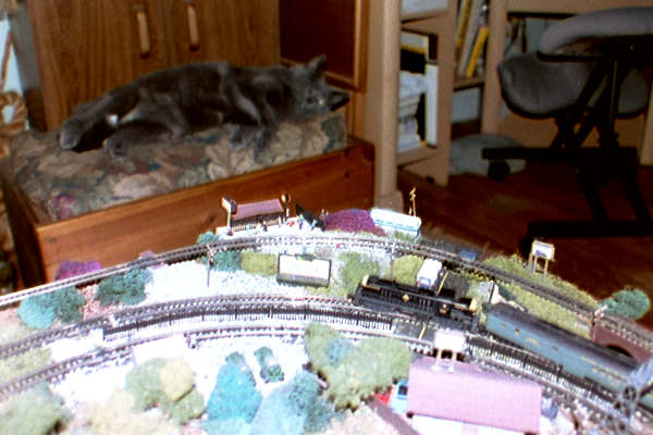 Did we pull a switch? The last 3 photos here show the layout with scenery. Actually, I took the train from Hoboken to get there - that's when I also took the photos of Lackawanna Terminal! These are the first photos of Dad's layout with its new scenery. I'm sure you appreciate the difference! |