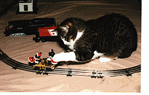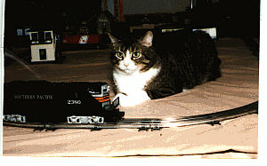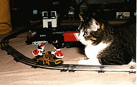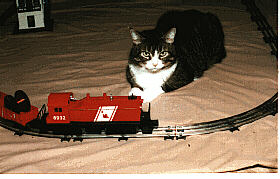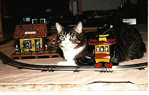 Sal over at Island Trains presented us with this gallery of photos of Sparkle, a happy cat who's favorite pastime is O gauge railroading. We think you'll enjoy seeing the furry feline at play!