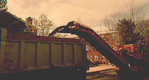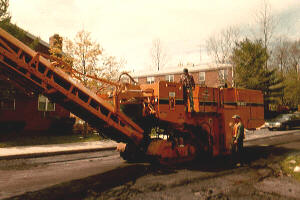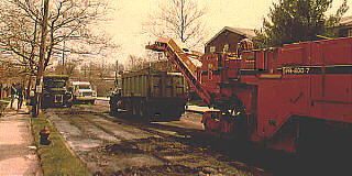 The scraper is large - it pulls up roadway, crushes it and loads it into a heavy truck |