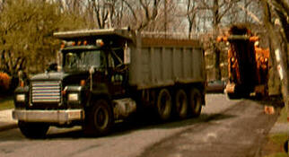 When it was time to repave our street, the City sent in some heavy construction vehicles and trucks. We rushed outside to get pictures of them, and here they are for you!